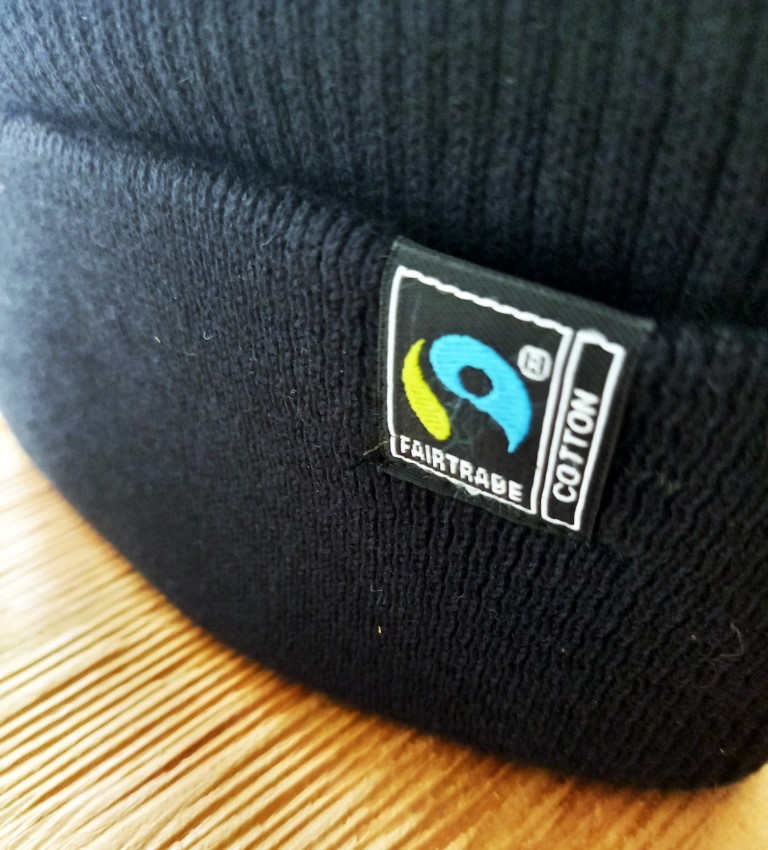High quality, eco-responsible and fair trade black beanie with embroidered lightning bolt logo in white and red.
