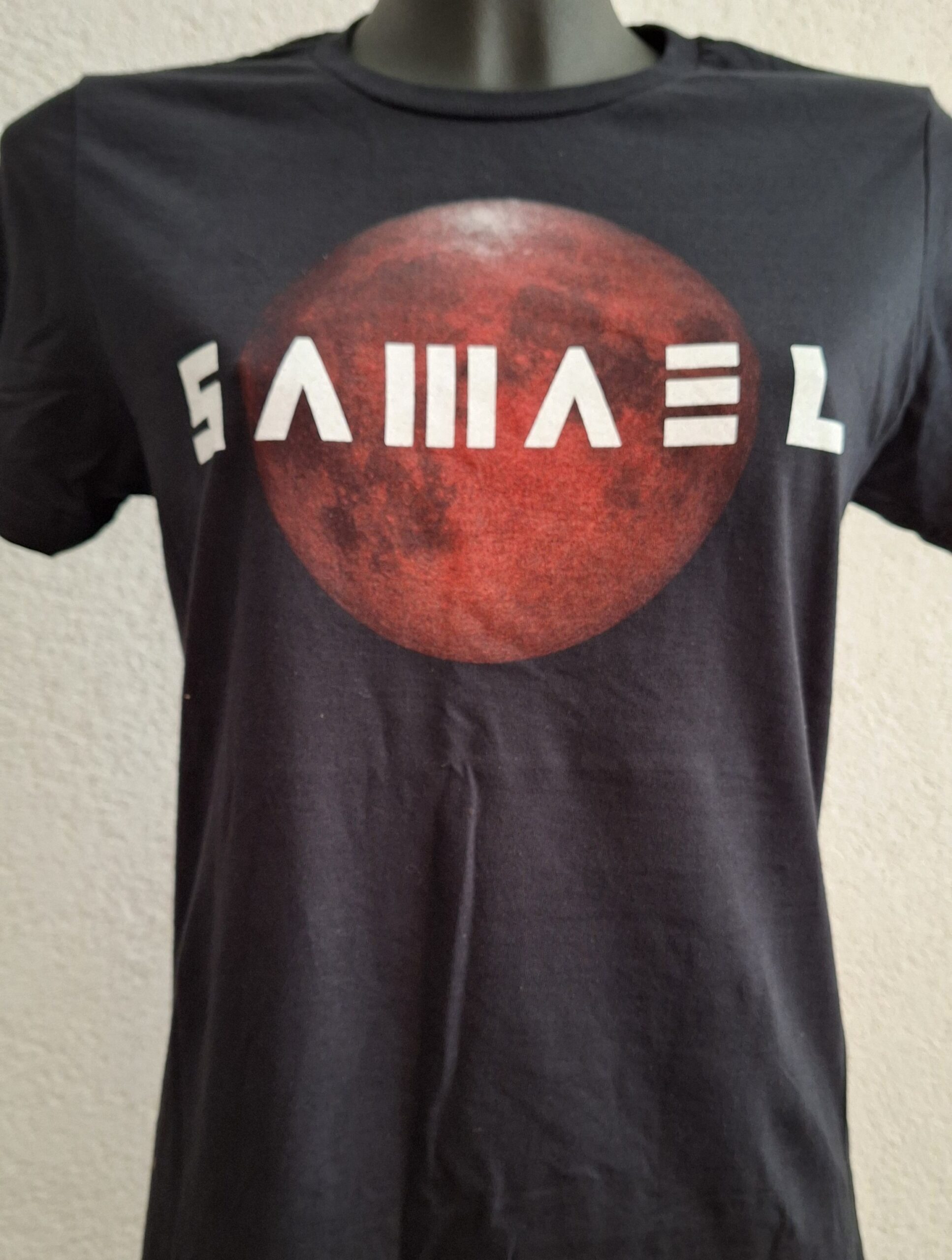 Passage Girly: high quality black T-Shirt with red moon and white logo printed on the front and red logo printed in the back