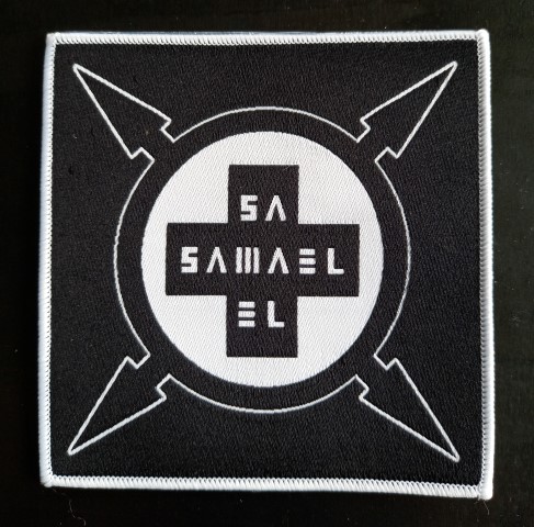 Patch Logo-Cross, high quality black and white woven patch. 10cm x 10cm