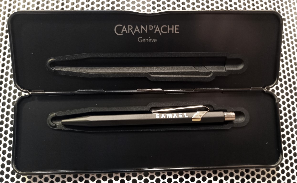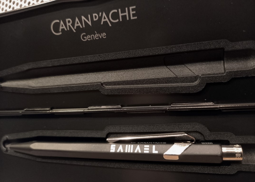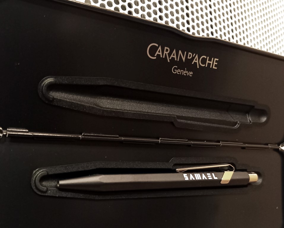 S A M A E L – Caran d’Ache metal pen with logo printed on the pen and metal case.