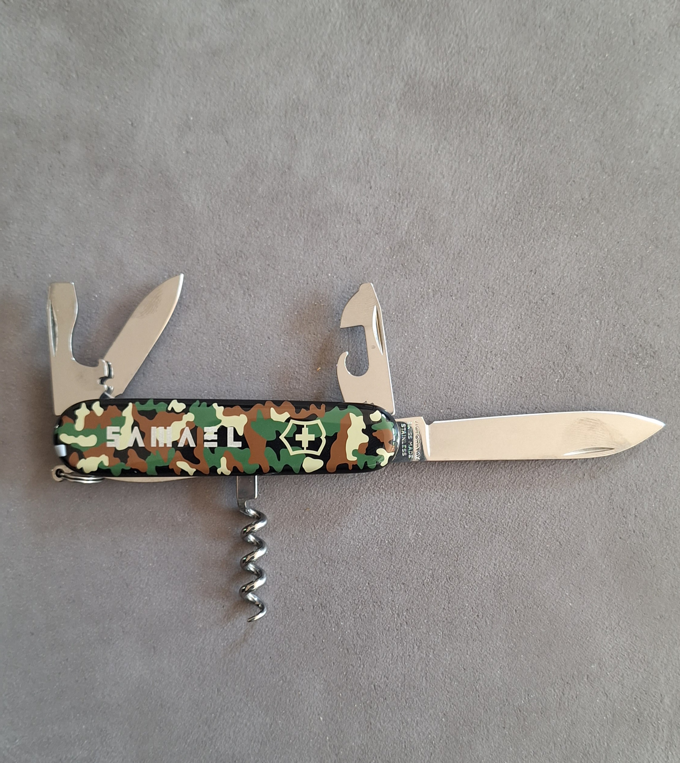 A pocket survival kit with two blades, can and bottle opener, corkscrew and more…